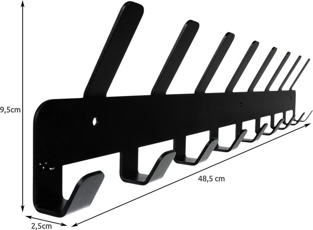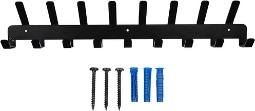 El paquete incluye tacos y tornillos: solo hay que taladrar orificios de 5 mm y fijar el perchero firmemente a la pared.