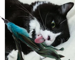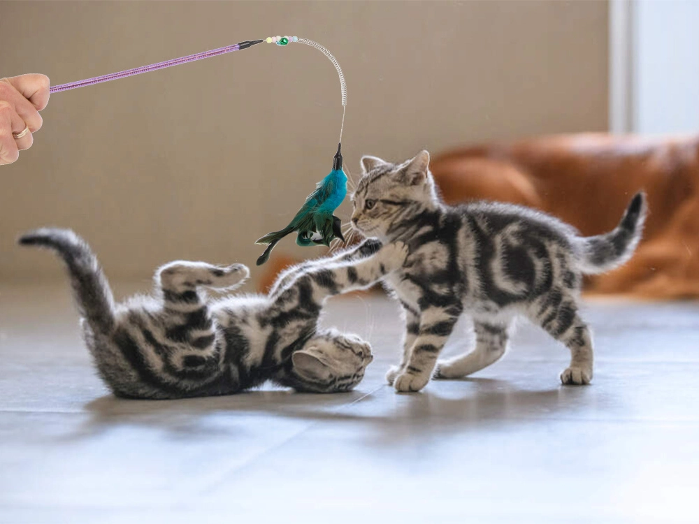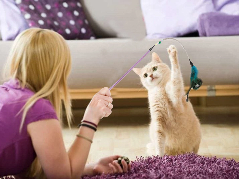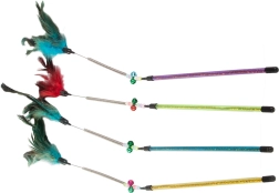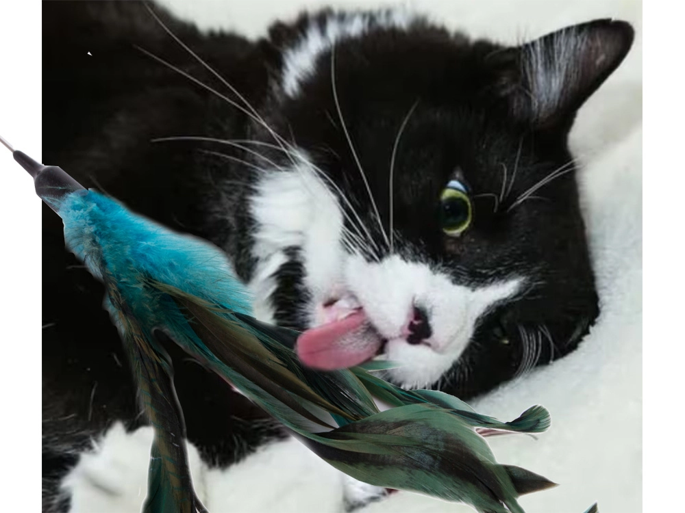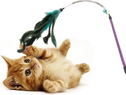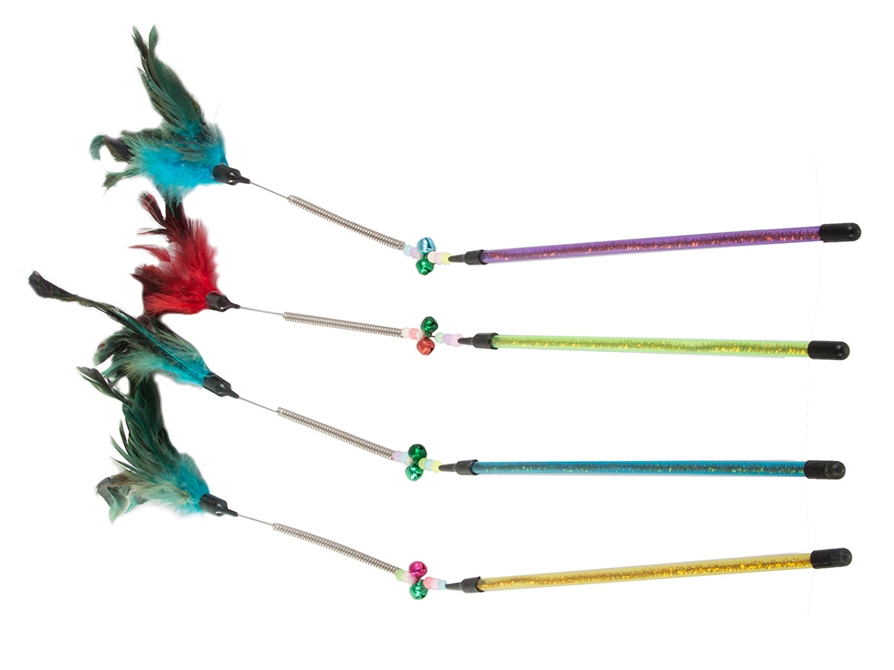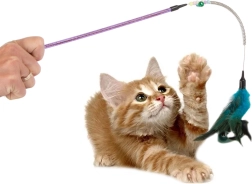 Las plumas de colores son suaves y atraen a los gatos a interactuar.