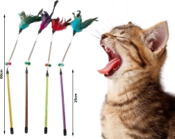 Simula la caza natural con este juguete interactivo para gatos, que fomenta la actividad física y previene el aburrimiento. Saltar, correr y cazar contribuyen a su salud y bienestar general. La varilla está hecha de plástico resistente, flexible y ligero, lo que permite un juego dinámico. Las plumas de colores son suaves y atractivas, invitando a los gatos a interactuar. La varilla larga ofrece la longitud necesaria para distintos movimientos, garantizando variedad durante el juego. Este juguete es una oportunidad para fortalecer el vínculo entre el dueño y el gato.