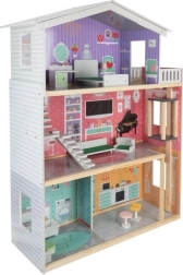 La gran casita de muñecas de madera KRUZZEL con una altura de 114 cm ofrece 3 plantas, 4 habitaciones y balcón, un ascensor funcional con manivela y un completo equipamiento de muebles. Gracias a su estructura estable de MDF y madera es segura, cuidadosamente acabada y anima al juego creativo lleno de imaginación.
