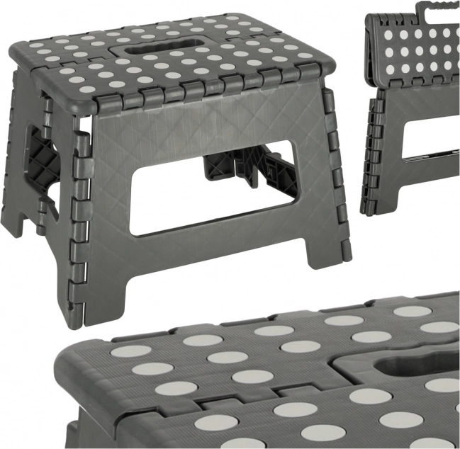 Este taburete plegable compacto es un gran ayudante allí donde necesites obtener rápidamente un apoyo estable o un asiento bajo. Su estructura ligera y resistente de plástico se pliega y despliega con facilidad y, gracias a su superficie superior antideslizante y su base sólida, garantiza un uso seguro.