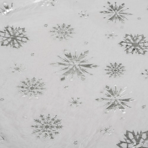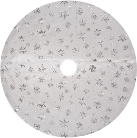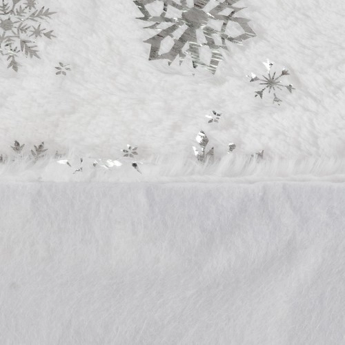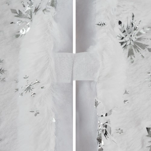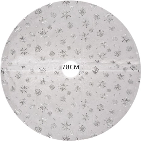 Esta falda está adornada con hermosas estrellas y copos de nieve plateados que aportan un toque navideño único y encantador a su decoración.