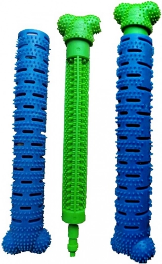Este ingenioso juguete dental combina diversión y cuidado de la cavidad oral del perro. La superficie texturizada con salientes de silicona elimina eficazmente restos de comida y placa durante la masticación, mientras masajea suavemente las encías. Los conductos internos permiten aplicar pasta dental para perros, que se libera gradualmente durante el juego.
