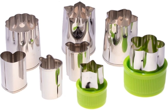 Descubre un juego universal de cortadores para fruta, verdura y masa en un paquete de 8 piezas. Crea fácilmente formas ingeniosas, gracias a las cuales tus ensaladas, postres y galletas quedarán hermosamente presentados y serán divertidos tanto para niños como para adultos. Los cortadores son fáciles de usar, reutilizables y fáciles de limpiar.