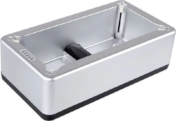 El acabado plateado no solo es elegante, sino también compacto, lo que permite instalar el dispositivo en diversos entornos.