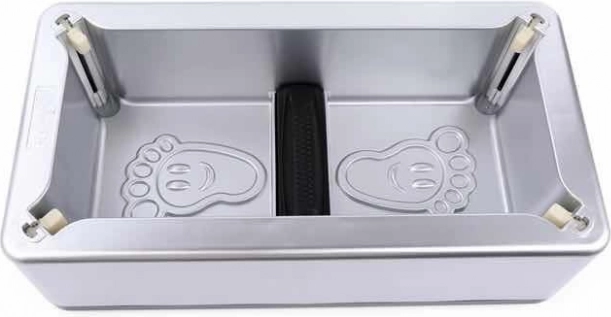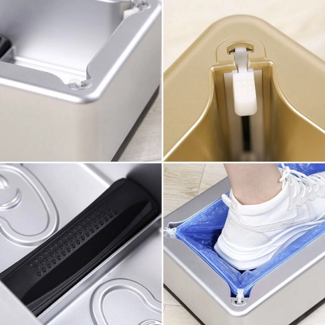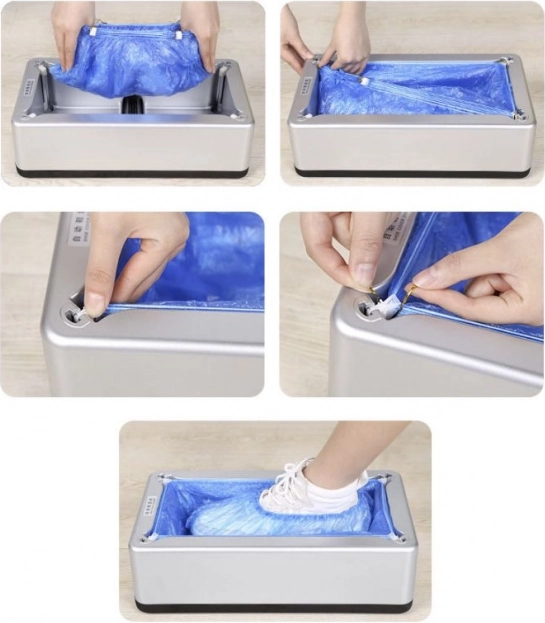 Solo tienes que introducir el pie y el dispensador coloca automáticamente el cubrezapato, facilitando y acelerando el proceso.