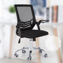 Elegante y funcional, esta silla giratoria para oficina y despacho en casa combina un respaldo de malla aireado con un asiento suavemente acolchado. La base de cinco radios cromada con ruedas aporta estabilidad y facilidad de movimiento en el escritorio, mientras que el ajuste de altura suave mediante pistón de gas adapta la postura a tu complexión.