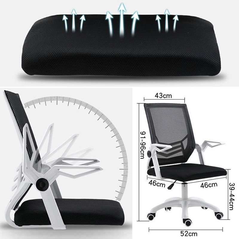 Gracias al respaldo contorneado y al soporte en la zona lumbar, reduce la fatiga de la espalda durante sesiones prolongadas. La tela de malla transpirable asegura la circulación del aire y limita el sobrecalentamiento. Es una excelente elección para oficinas modernas, habitaciones de estudiantes y home office.