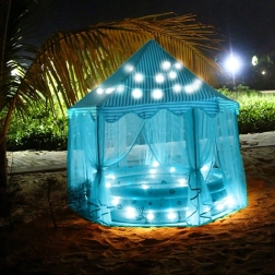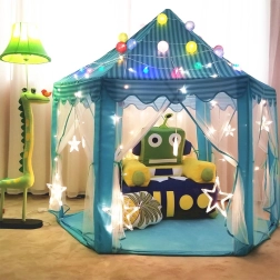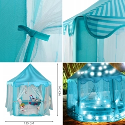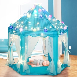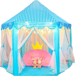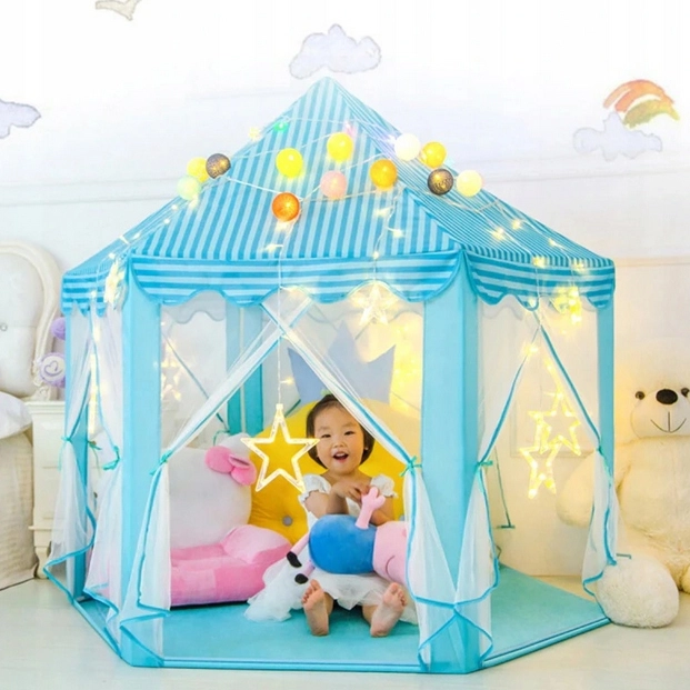 Esta tienda infantil hexagonal es la elección perfecta para todas las pequeñas princesas y príncipes que desean un lugar mágico para sus juegos. Gracias a su diseño aireado con opción de mover las cortinas, ofrece espacio suficiente para varios niños. Se pliega rápidamente y es fácil de transportar gracias a la bolsa de almacenamiento con asa incluida.