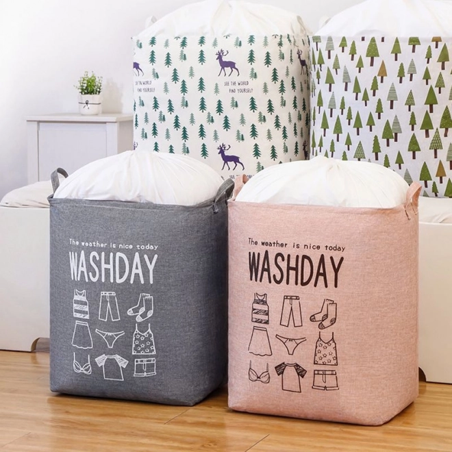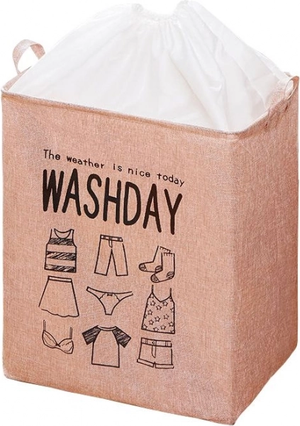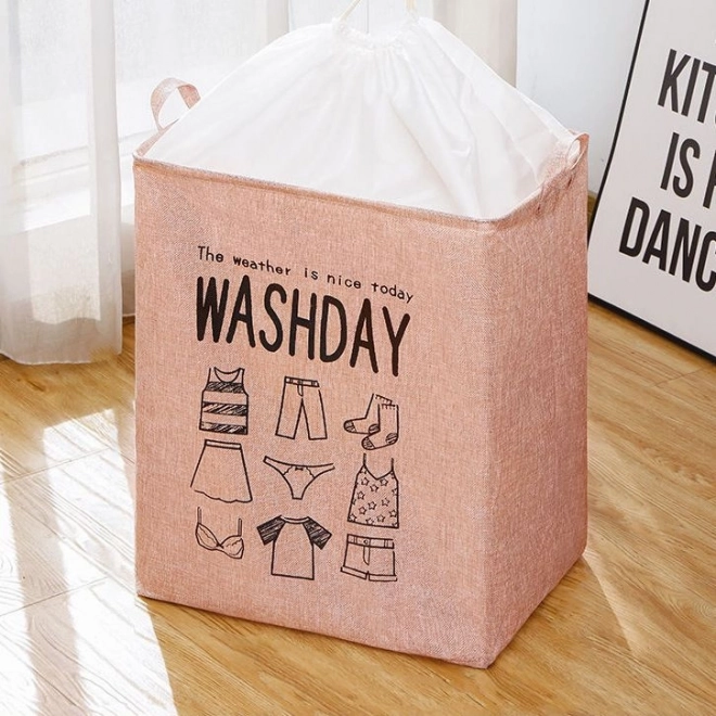 Práctica cesta de tela para ropa sucia en elegante color rosa con cierre de cordón que mantiene tu baño ordenado y sin desorden. Es ligera, fácil de transportar gracias a dos asas, tiene una estructura estable y, al plegarse, ocupa muy poco espacio. Su gran capacidad alberga la colada de toda la familia.