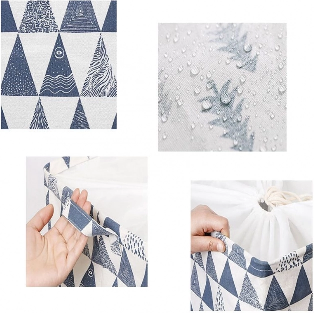 El práctico cordón mantiene el contenido en su sitio, protege la ropa del polvo y oculta discretamente el interior de la cesta.