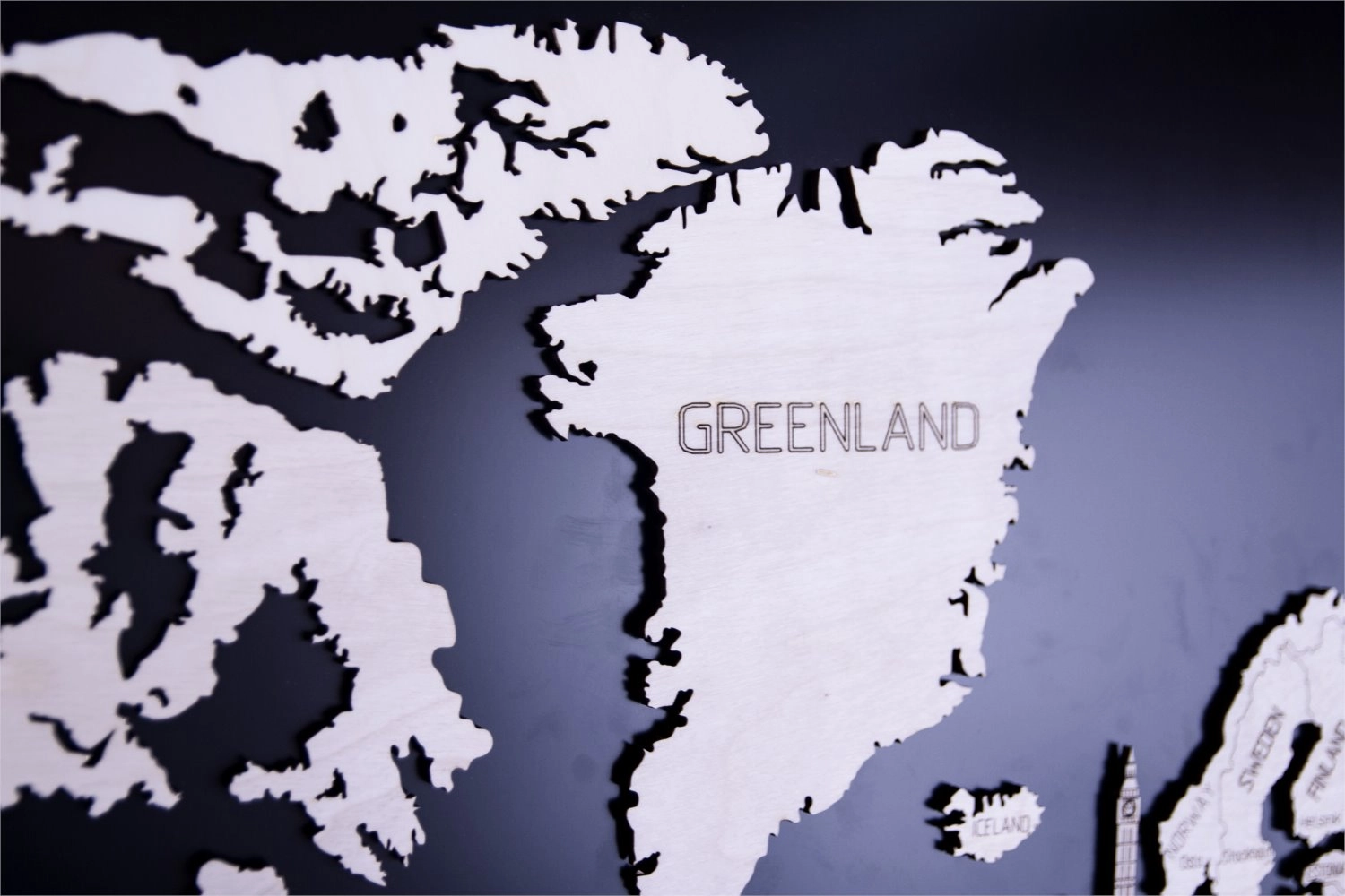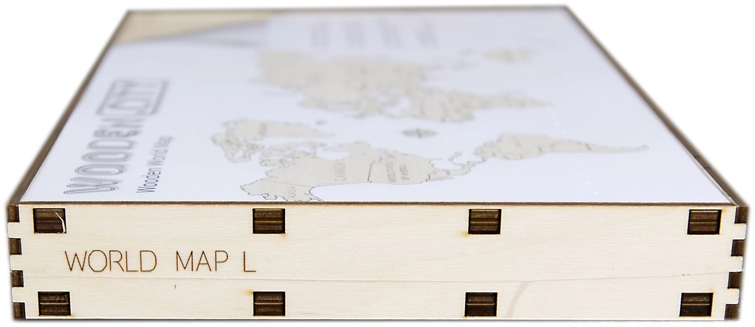 El mapa está cortado en contrachapado de abedul, lo que aporta al interior un aspecto natural y elegante.