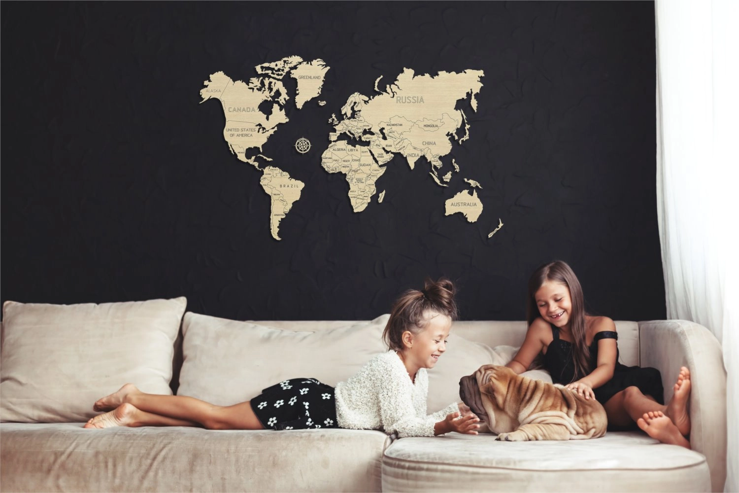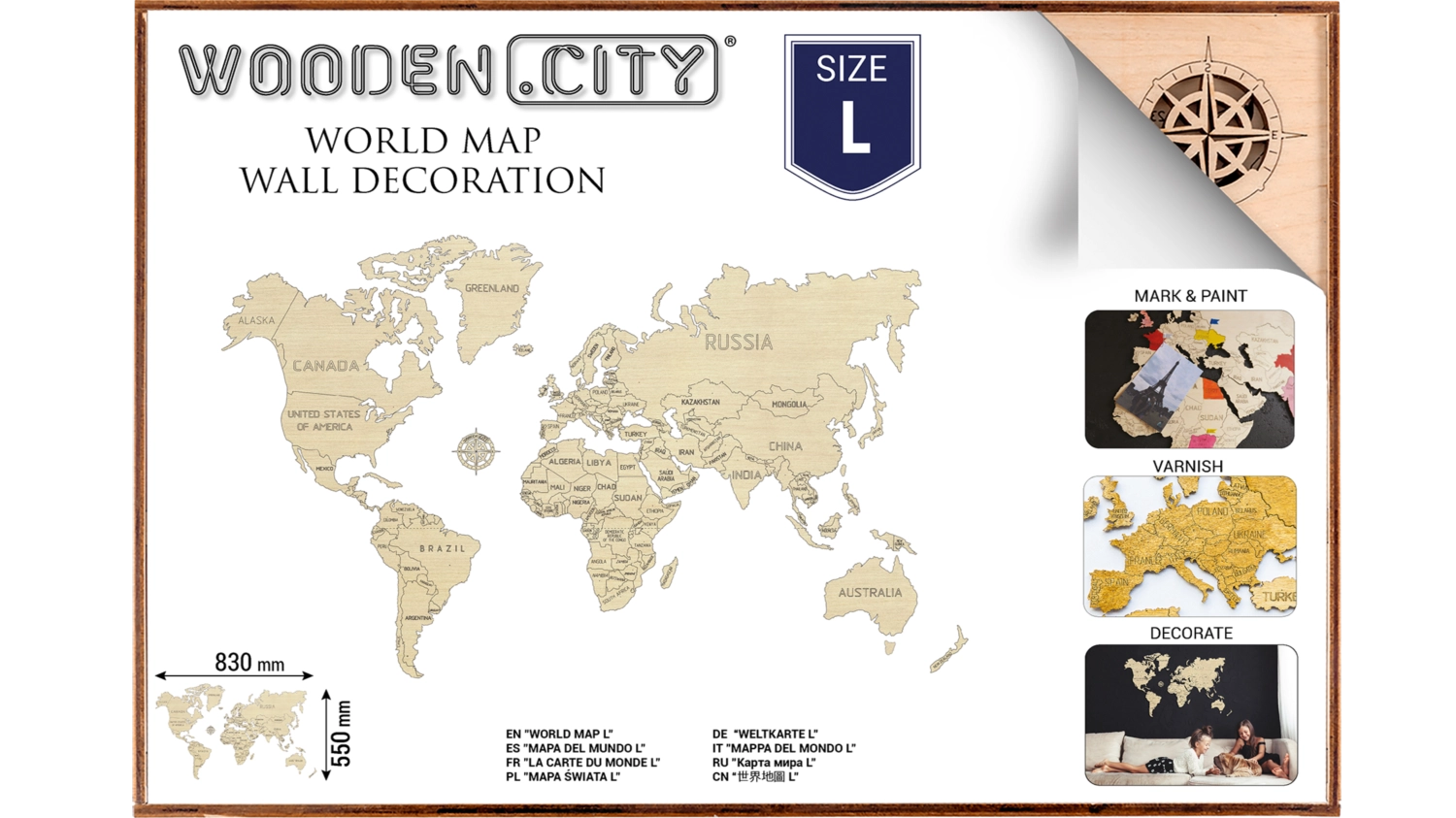 Pégalo en la pared y utilízalo como medio interactivo para registrar tus aventuras viajeras: añade chinchetas o colorea los lugares visitados. El mapa es adecuado no solo para el salón, sino también para la oficina y otros espacios.