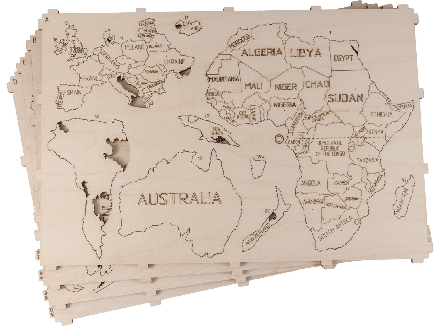 Descubre la magia del mundo con este singular mapa de madera, cortado con láser a partir de contrachapado de abedul de alta calidad. El mapa está diseñado para mostrar con precisión continentes y países, por lo que funciona como una decoración con estilo o un elemento didáctico. El paquete incluye una guía ilustrada y cinta adhesiva de doble cara para una instalación sencilla.