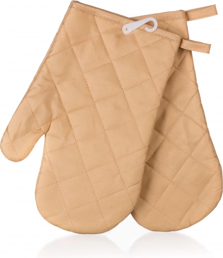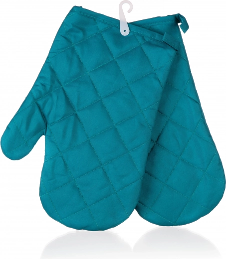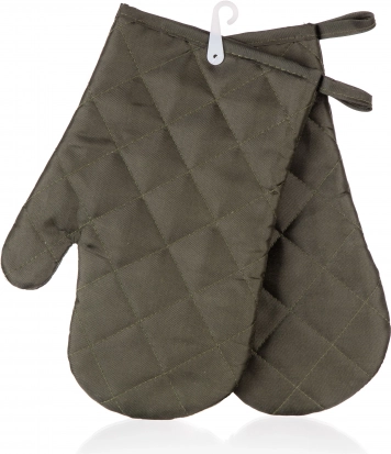 Las manoplas están hechas de 100% poliéster (material y relleno), que se limpia fácilmente y se seca rápido. Su diseño liso y monocromo con discreto ribete encaja perfectamente en cocinas modernas y clásicas.