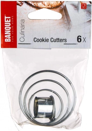 Práctico juego de cortadores con forma de círculo de acero inoxidable resistente para un horneado y decoración de repostería fáciles. Incluye 6 piezas de distintos diámetros, ideales para galletas, masa sable, fondant y mazapán. El acero inoxidable garantiza una larga vida útil, limpieza fácil y formas precisas.