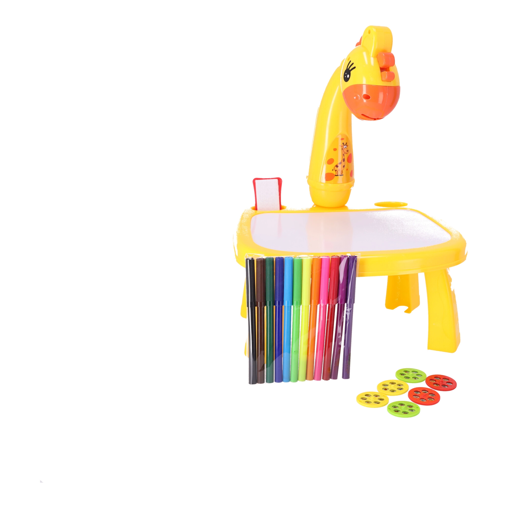 Descubre una forma divertida de enseñar a los niños a dibujar: un proyector multifuncional con forma de jirafa amarilla que proyecta patrones para calcar. Fomenta la creatividad, la motricidad fina y la concentración. Con 6 plantillas de proyección, 12 rotuladores y un uso sencillo, es ideal para pequeños artistas a partir de 3 años.