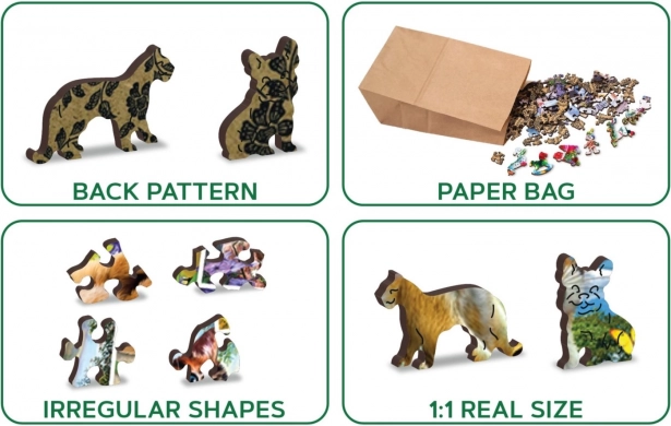 Este rompecabezas de madera premium “Postal con animales” ofrece una experiencia original para toda la familia. Gracias al corte láser de precisión, las piezas tienen bordes suaves y algunas están deliberadamente recortadas con forma de animales, edificios y objetos, lo que aporta una dimensión extra al montaje. La impresión a doble cara permite armarlo tanto por la imagen como por el patrón del reverso.