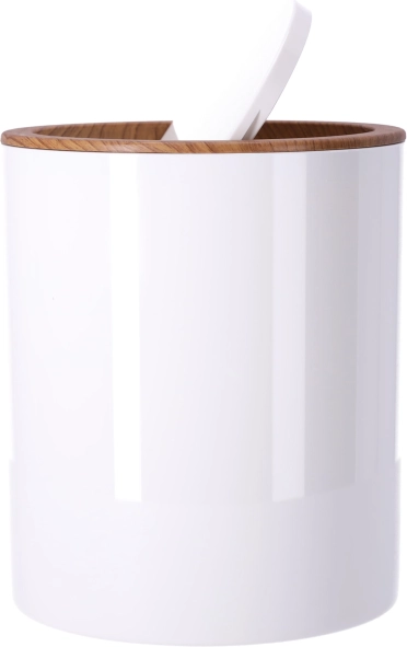 Papelera compacta con tapa abatible que permite tirar los residuos cómodamente y ayuda a reducir la propagación de olores. Su diseño minimalista encaja en cualquier baño.