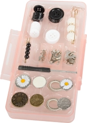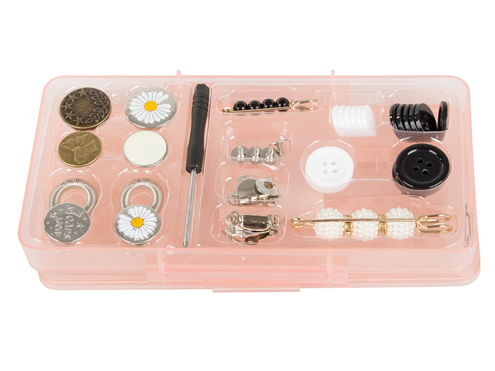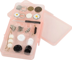 El kit incluye agujas, hilos y botones de distintos tamaños, lo que permite un uso amplio para diversos tipos de reparaciones.