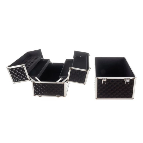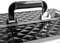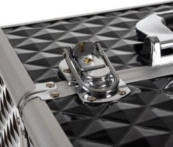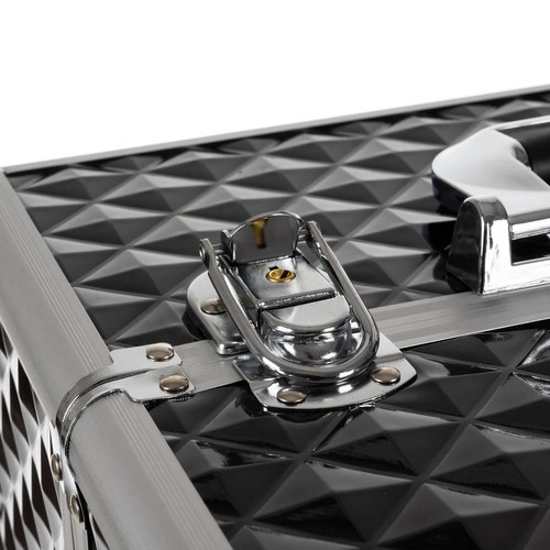 La combinación de metal negro y plateado con patrones geométricos aporta un aspecto moderno al maletín y garantiza su durabilidad.