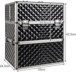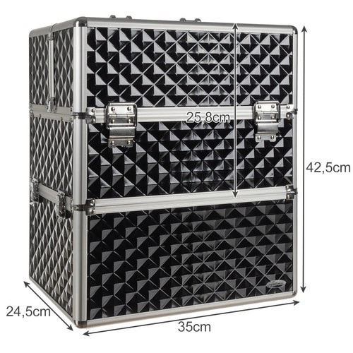 Las dimensiones del maletín son 42,5 x 35 x 24,5 cm con un peso de 3,05 kg, y es ideal para viajar y proteger tus productos cosméticos de daños o suciedad.