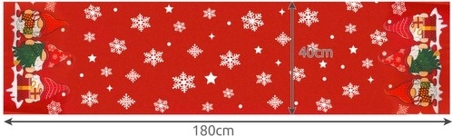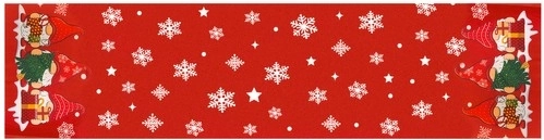 Elegante camino rojo con copos y estrellitas blancas, adornado con encantadores gnomos con regalos en los extremos, que crea al instante un ambiente festivo y acogedor. Destaca sobre un mantel blanco o por sí solo y combina fácilmente con vajilla clásica.