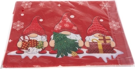El intenso rojo, los copos de nieve y tres alegres gnomos con regalos transforman cualquier mesa en un acogedor rincón festivo.