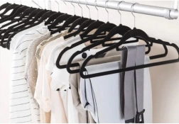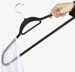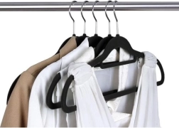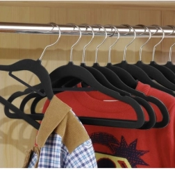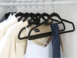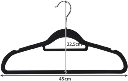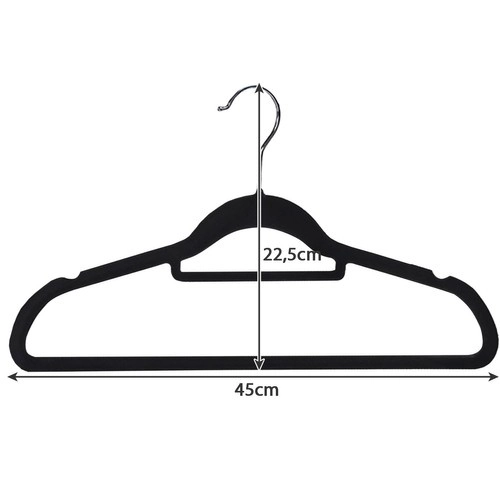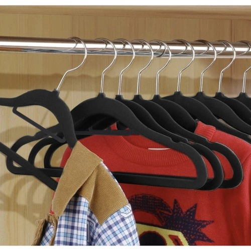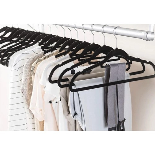 - Material de alta calidad: Las perchas están hechas de plástico y recubiertas con suave terciopelo, lo que evita que las prendas se deslicen.