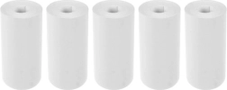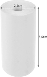 En el paquete encontrarás 5 rollos de papel blanco con un ancho de 5,6 cm y un diámetro de 2,5 cm, que pesan 92 g y 102 g con embalaje. Gracias a sus dimensiones compactas, son adecuados para una manipulación y almacenamiento sencillos.
