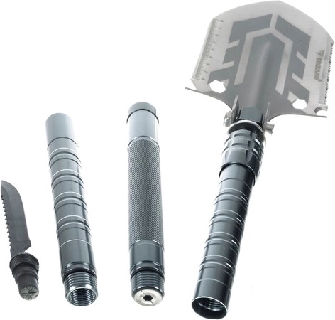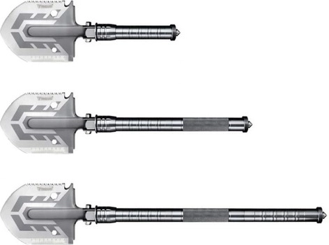 La pala Trizand combina 16 funciones extraordinariamente útiles, lo que la convierte en la herramienta ideal para acampar, viajar o llevar en el coche.