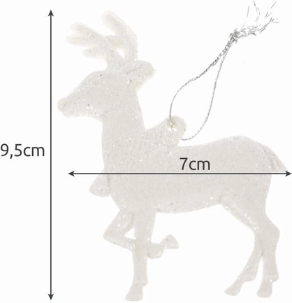 Elegantes adornos navideños con forma de reno y acabado brillante que aportan a tu árbol un toque mágico y un resplandor radiante. Seguros, de plástico y de uso universal.