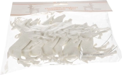 Añade un encanto deslumbrante a tu árbol de Navidad con estos adornos con forma de reno. El set incluye 9 renos elegantemente elaborados, cada uno con un acabado brillante.