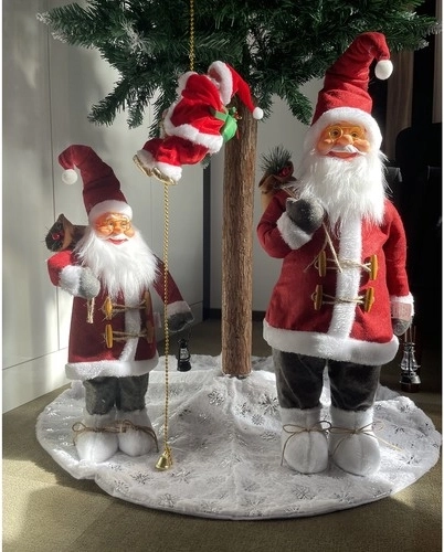 En el gorro y las mangas hay alambres ocultos que permiten ajustar fácilmente la expresión y postura de San Nicolás según tu decoración.
