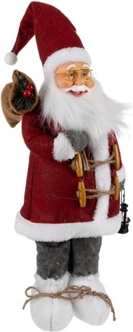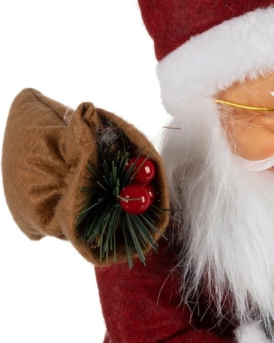 Esta decoración navideña de San Nicolás, ricamente adornada, llama la atención a primera vista. La capa roja con ribete blanco, la larga barba blanca y las gafas doradas crean un aspecto clásico que es inseparable de la Navidad. San Nicolás lleva un farol y un saco lleno de regalos a la espalda, aportando de inmediato un ambiente festivo.