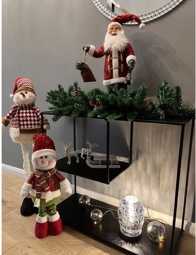 Los prácticos alambres en el gorro y las mangas permiten cambiar fácilmente la forma y la posición de los brazos para perfeccionar la escena. El calzado estable mantiene la figura firmemente en su sitio: ideal para la puerta de entrada, escaleras, alféizar e incluso junto al árbol de Navidad.