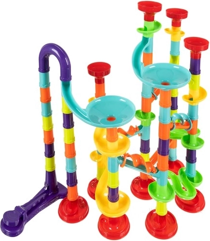 Construye tu propia pista de canicas 3D con hasta 113 piezas y haz que 30 canicas compitan por toboganes de colores, embudos y rampas. Las piezas se conectan fácil e intuitivamente, para que los niños puedan cambiar las rutas rápidamente y desarrollar la creatividad, el pensamiento espacial y la motricidad fina.