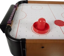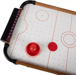 El air hockey de mesa en formato mini ofrece una gran dosis de diversión en cualquier superficie. Sus dimensiones compactas permiten jugar en cualquier lugar: salón, habitación infantil o casa de campo. La superficie estable con cojín de aire garantiza un deslizamiento fluido del disco y un juego dinámico sin atascos.