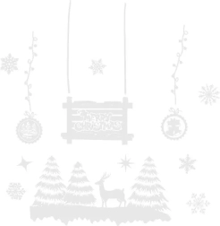 Crea en casa una atmósfera invernal mágica con estas pegatinas navideñas blancas para ventanas. Las pegatinas de PVC se adhieren sin pegamento, por lo que se pueden colocar y retirar fácilmente sin dejar marcas. Ideales para vidrio, espejos o azulejos: los motivos de arbolitos, renos, muñeco de nieve y el texto Merry Christmas lucen de día y de noche. Instalación rápida, uso reutilizable y retirada limpia sin manchas.