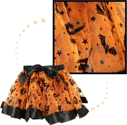 Los colores naranja y negro con motivos de murciélagos, estrellas y calabazas harán que tu peque destaque en cualquier fiesta.