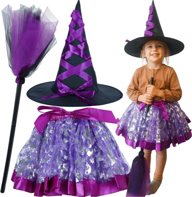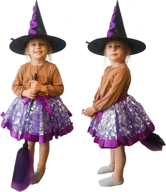 Viste a tu hijo con este encantador conjunto de disfraz de bruja, que incluye un sombrero decorativo, una falda morada con cintura elástica y una escoba única. Este disfraz es perfecto para carnavales escolares, eventos temáticos o simplemente para divertirse en casa.