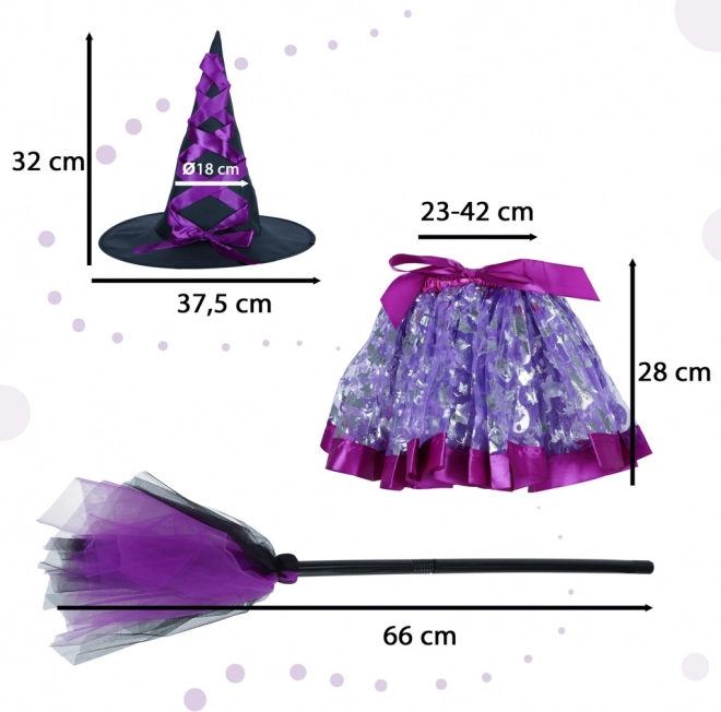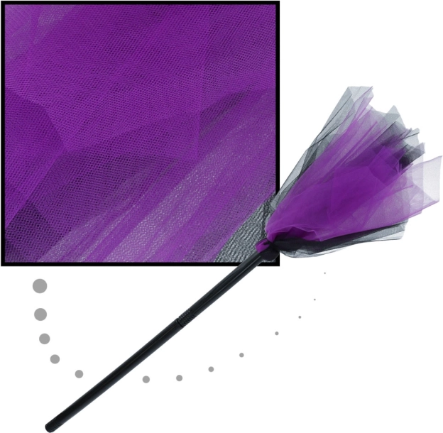 Añade un toque extra de magia al conjunto. La escoba con mango negro y flecos morados y negros es un complemento digno.