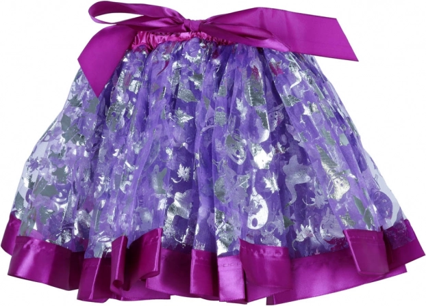 Falda morada con patrones plateados brillantes y cintura elástica que se adapta fácilmente a diferentes figuras.
