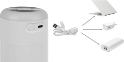 La iluminación LED RGB integrada con cambio de color crea un ambiente agradable y también sirve como suave luz nocturna. La alimentación se realiza mediante USB (USB‑C), así que puedes usar el humidificador con el portátil, en el coche o con una powerbank. Por supuesto, cuenta con apagado automático por falta de agua para la máxima seguridad.