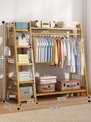 Elegante y funcional perchero de bambú de 130 cm, ideal para organizar ropa y accesorios de forma clara. Combina una barra para perchas con cinco estantes prácticos, para tener todo a mano: desde abrigos y americanas hasta cajas, toallas o mantas. El bambú natural aporta un aspecto cálido y moderno al interior y, al mismo tiempo, es respetuoso con el medio ambiente.