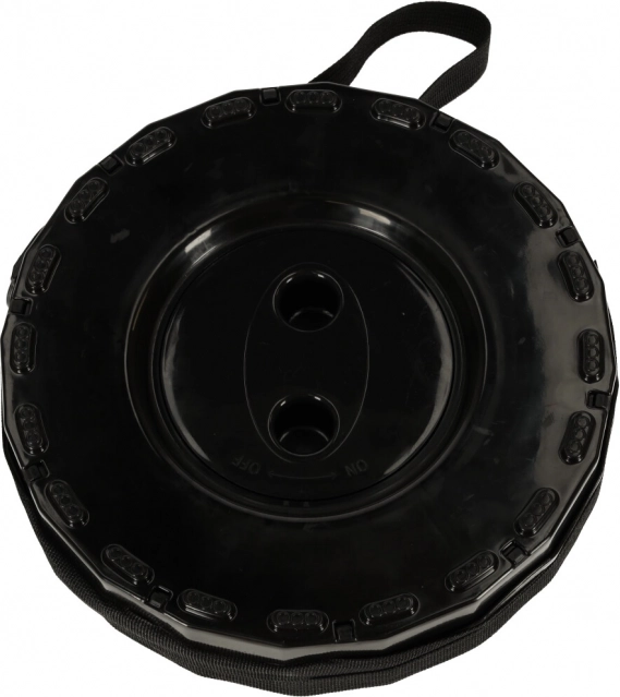 Una vez plegado, el taburete tiene forma de disco plano. Gracias a la correa y al asa, puedes llevarlo en la mano o al hombro y ahorrar espacio en la mochila.