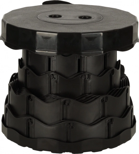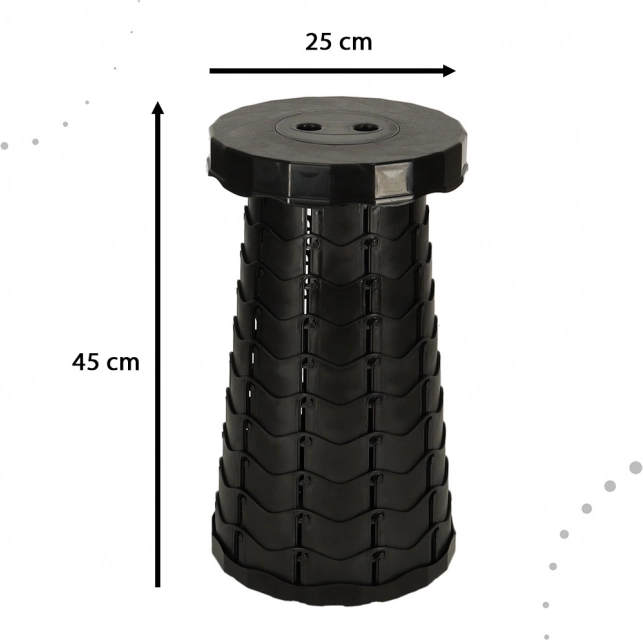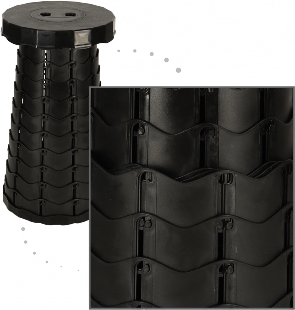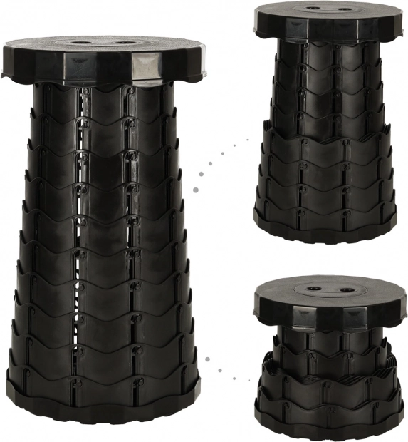 Este taburete telescópico portátil ofrece un asiento cómodo mientras esperas en una cola, en festivales, al acampar o pescar. Se despliega en un instante: simplemente gira las bases, extiende hasta la altura deseada y el mecanismo queda bloqueado para evitar plegados involuntarios.