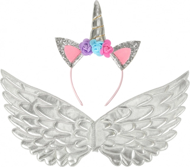Esta diadema transforma a cualquier niño en un unicornio mágico gracias a su elegante cuerno plateado y flores decorativas.