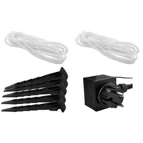 La estructura de poliéster con protección IP44 resiste el clima invernal. En el paquete encontrarás cuerdas, piquetas y un adaptador de alimentación para un anclaje y funcionamiento seguros.
