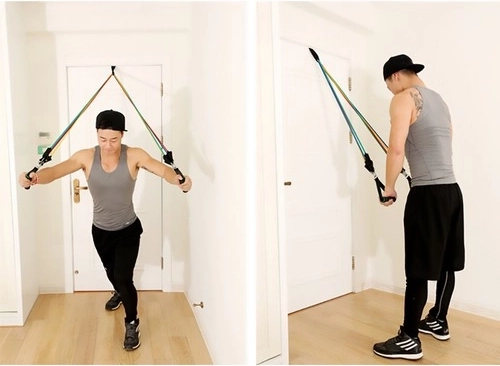 El ancla para puerta, las asas y las correas para tobillos amplían las posibilidades de entrenamiento. Incluye una práctica bolsa para facilitar el transporte.